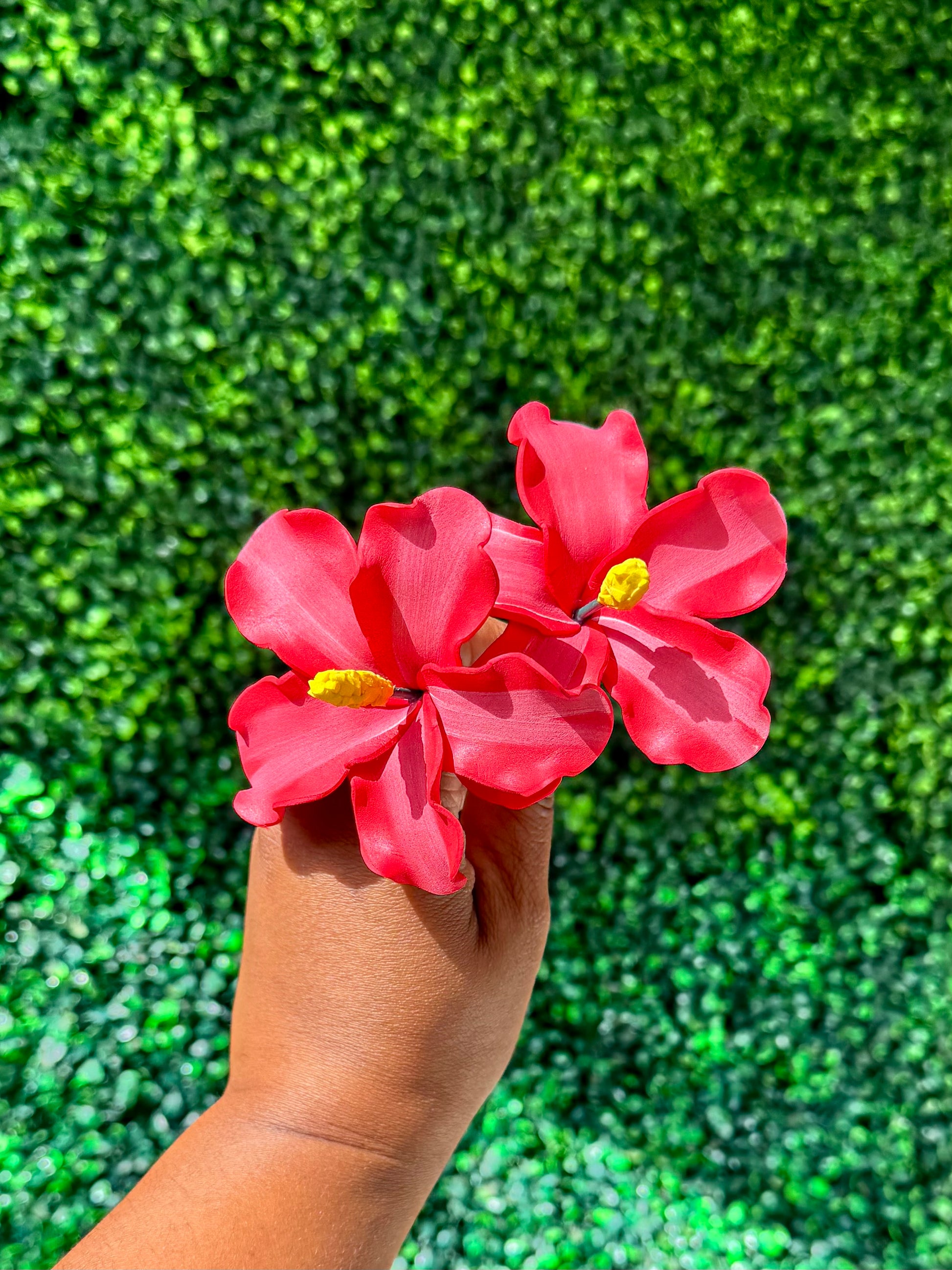 Crafted by the skilled hands of Marieta in Apia, Samoa. Featuring a sturdy, long stem and natural-looking colors that will add a touch of nature to your daily outfit.