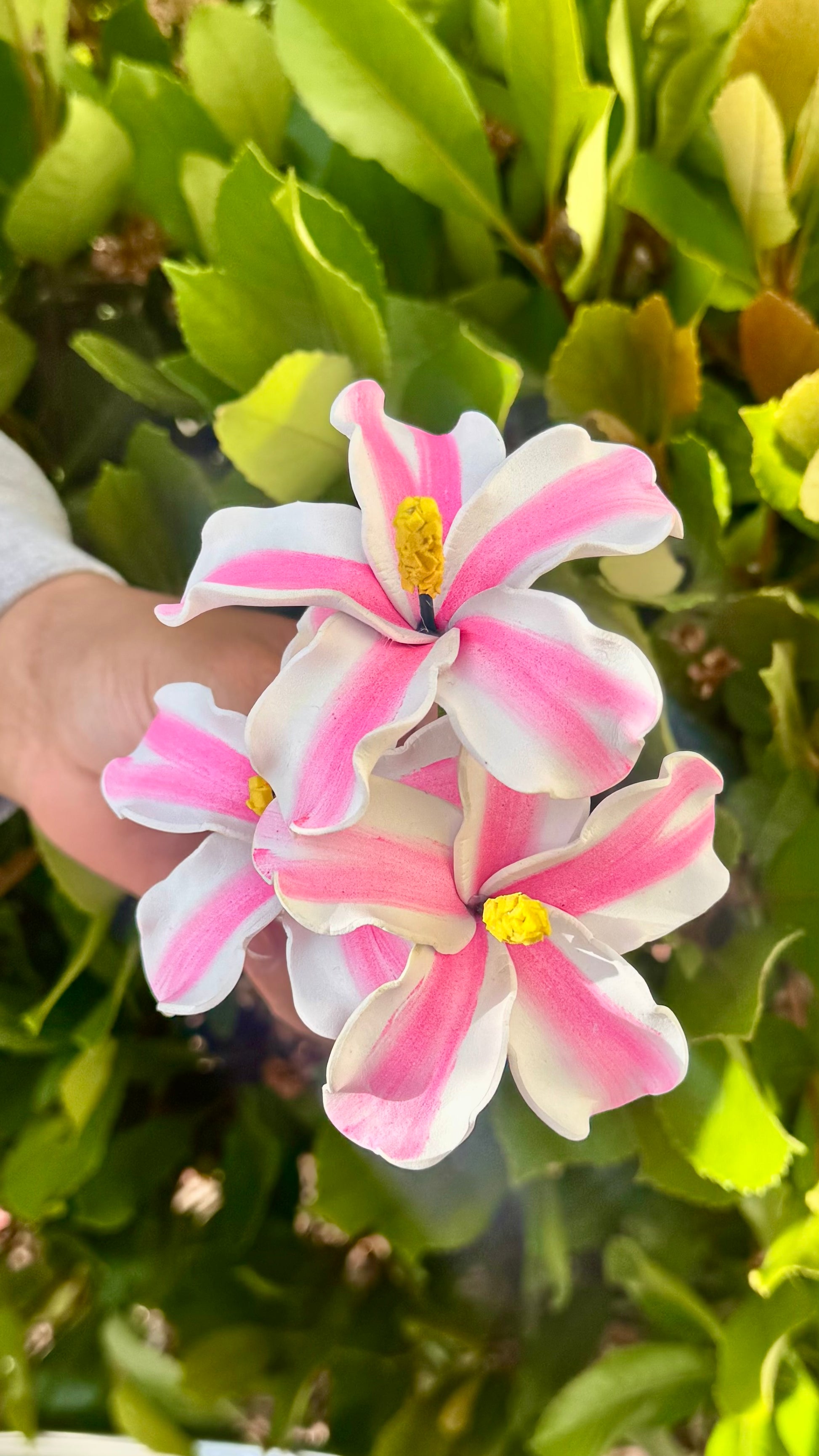 Crafted by the skilled hands of Marieta in Apia, Samoa. Featuring a sturdy, long stem and natural-looking colors that will add a touch of nature to your daily outfit.