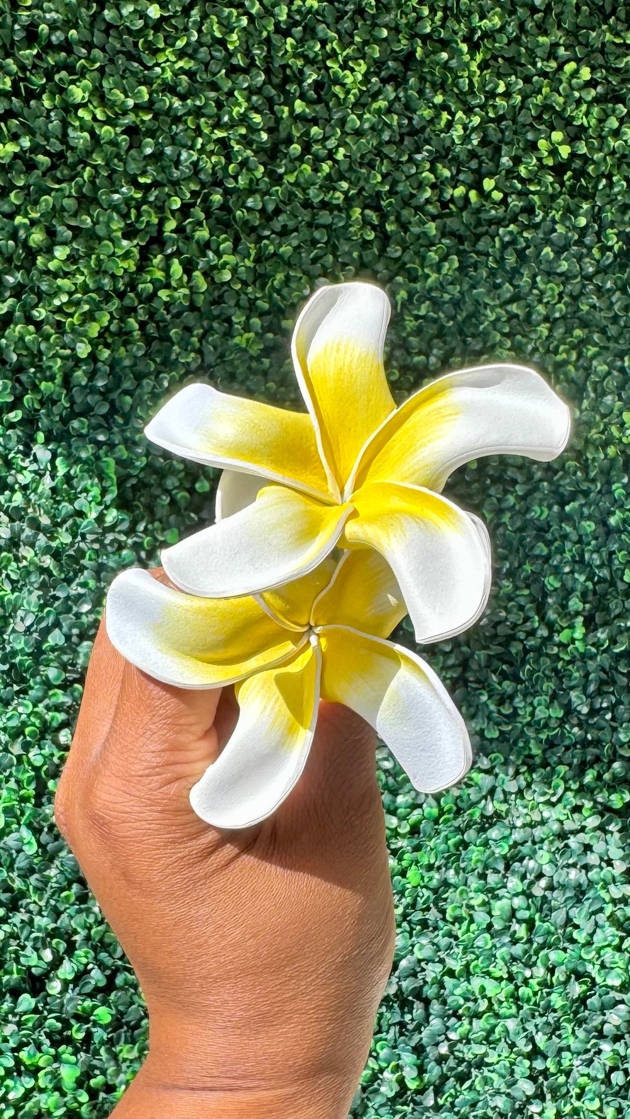 Crafted by the skilled hands of Marieta in Apia, Samoa. Featuring a sturdy, long stem and natural-looking colors that will add a touch of nature to your daily outfit.