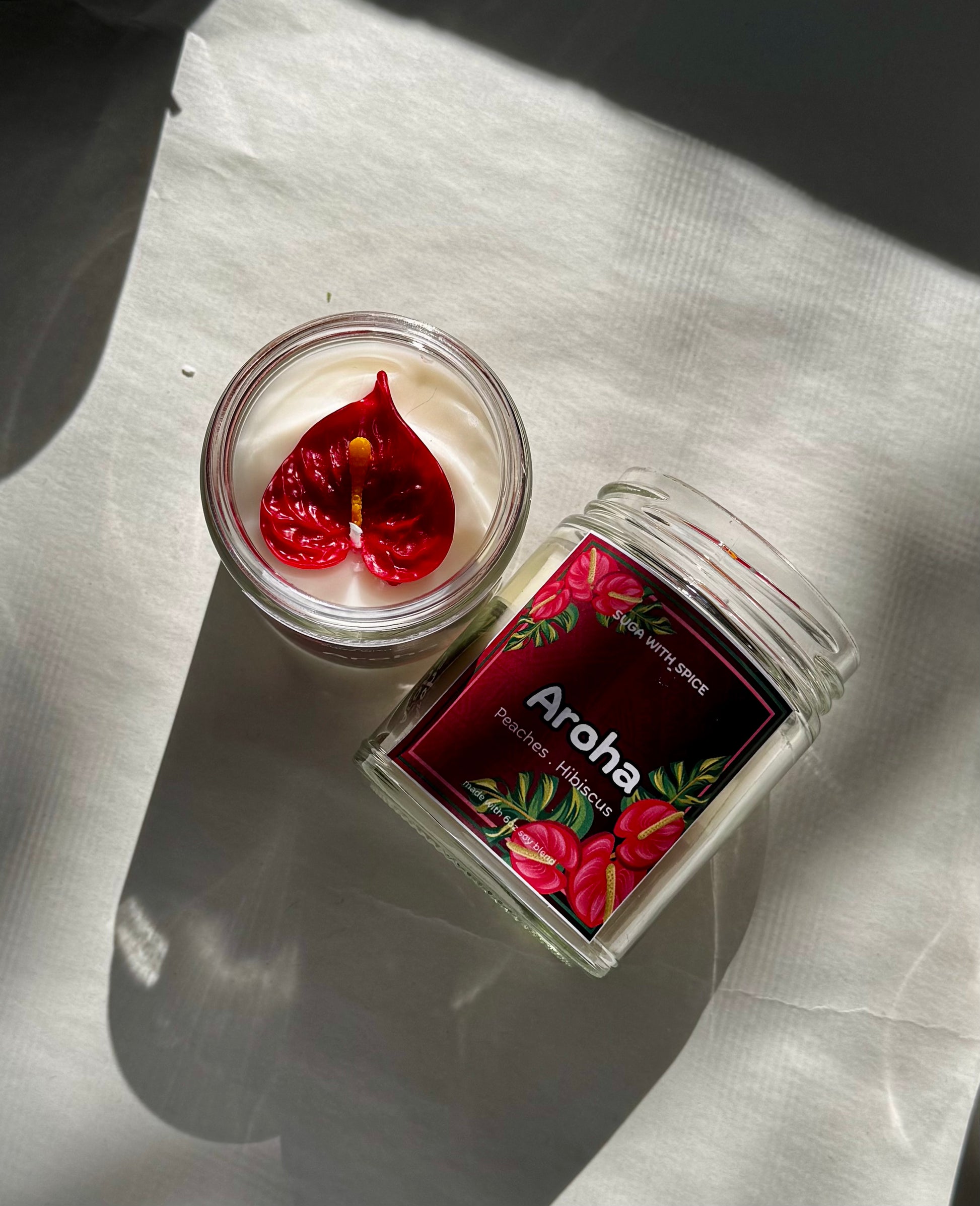 Aroha translates to love in Tahiti. Our cherished anthuriums, which resemble heart shapes, are widely found throughout the South Pacific. This inspiration is reflected in the name of this candle. It beautifully encapsulates the essence of the South Pacific, representing how we are all part of one family, united by love for our culture, our lands, and our people.